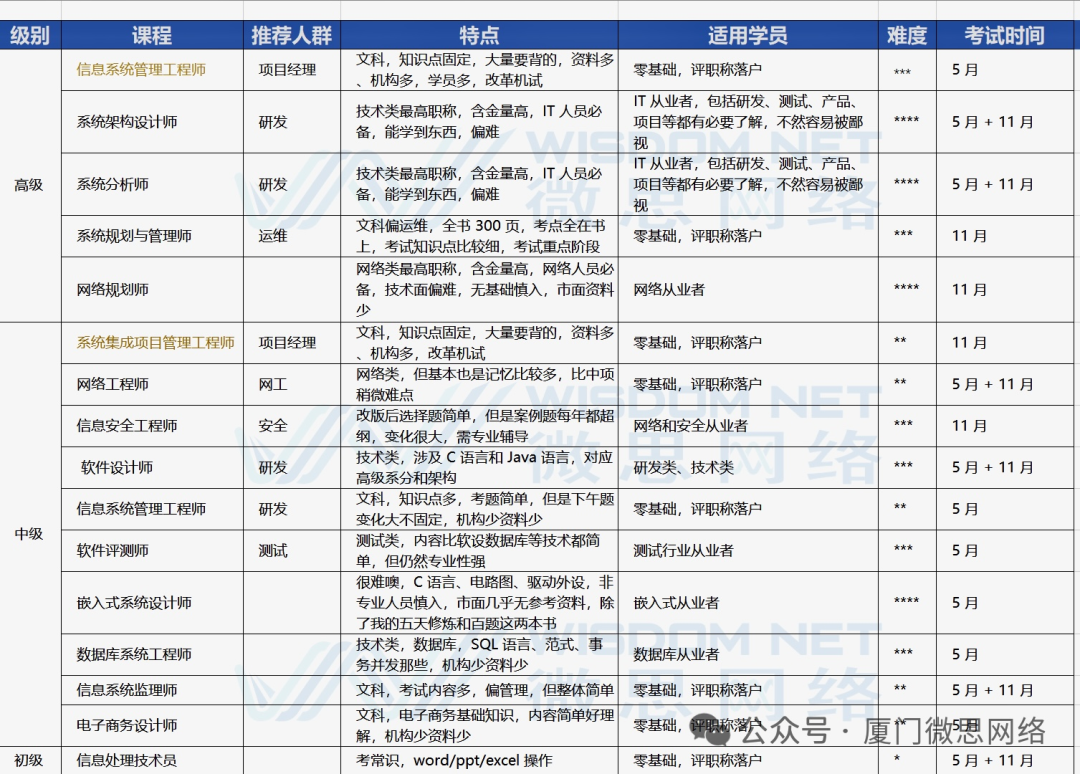初级建议选(网络管理员、程序员、信息系统运行管理员)