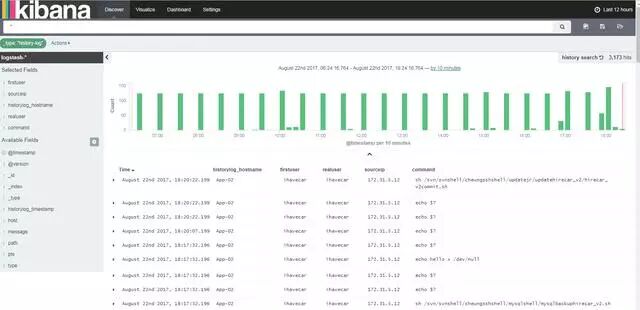 下面就是我自己搭建的ELK系统用于监控服务器操作: