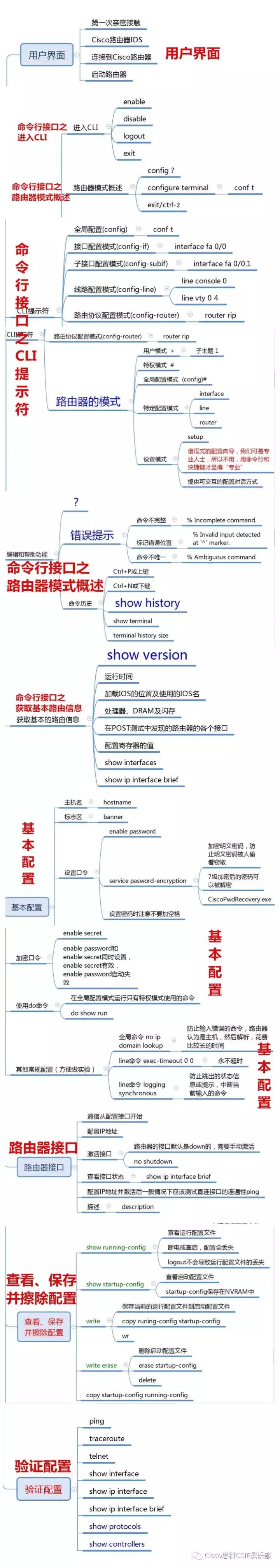 其中命令行接口又包括进入CLI、路由器模式概述、CLI提示符、编辑和帮助功能、获取基本的路由信息。